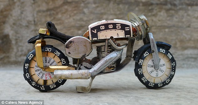 艺术家用废弃手表巧制摩托车模型